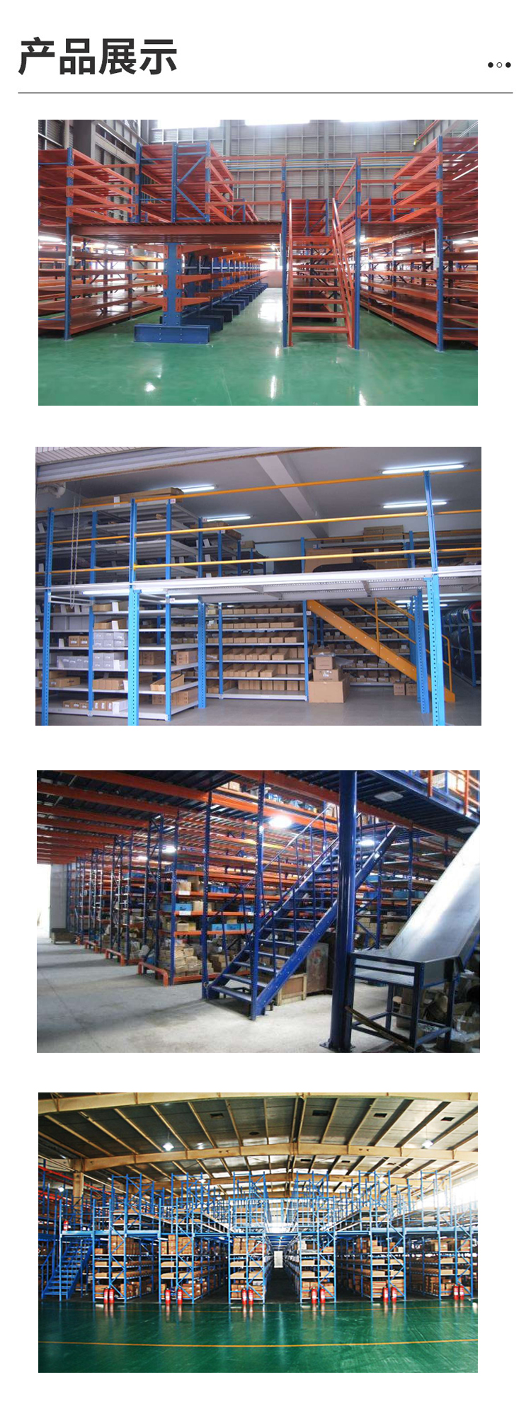 產(chǎn)品描述:閣樓貨架系統(tǒng),通常利用中型擱板式貨架或重型擱板式貨架作為主體支撐加上樓面板(根據(jù)貨架單元的總負(fù)載重量來決定選用何種貨架),樓面板通常選用冷軋型鋼樓板、花紋鋼樓板或鋼格柵樓板。